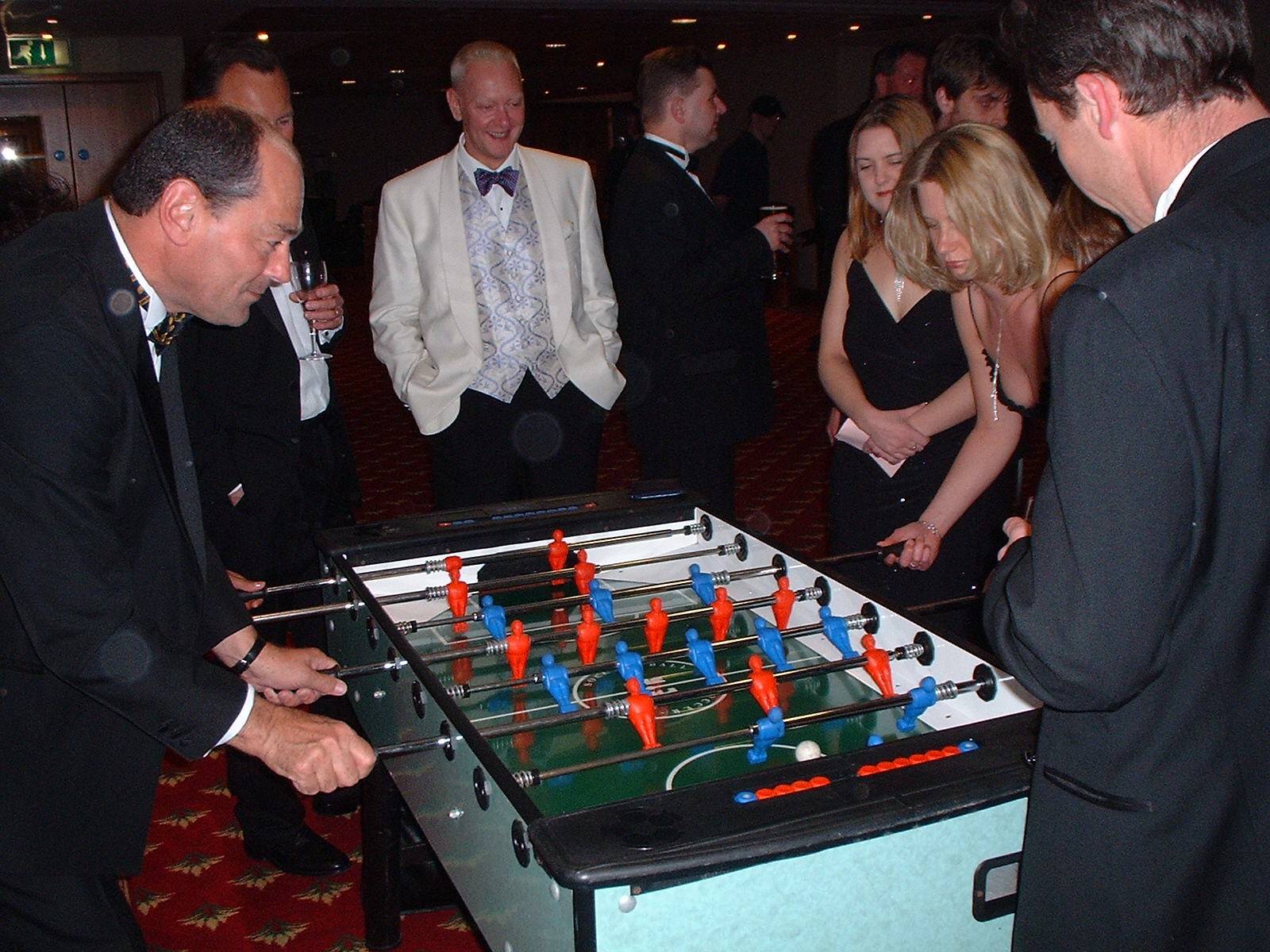 Stolní fotbalTradiční všemi oblíbená zábava pro 4 hráče. Pronajímáme pouze profi fotbálky, které plně vyhovují ligovým parametrům, s průchozími tyčemi a s osvětlenou hrací plochou. Postřeh, rychlé reakce, emoce a soutěžení. To je klasika, která zpestří každou akci. Oblíbená hra pro všechny věkové kategorie. Stolní fotbaly přepravujeme s demontovanými nohami, proto mohou být umístěny i v prostorech s vchodem velikosti běžných bytových dveří.